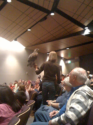 This is a Ferruginous Hawk. She kept screeching every once in a while it was a bit intimidating. I was afraid for the small children in the audience since they could be mistaken for small rodents/delightful snacks.